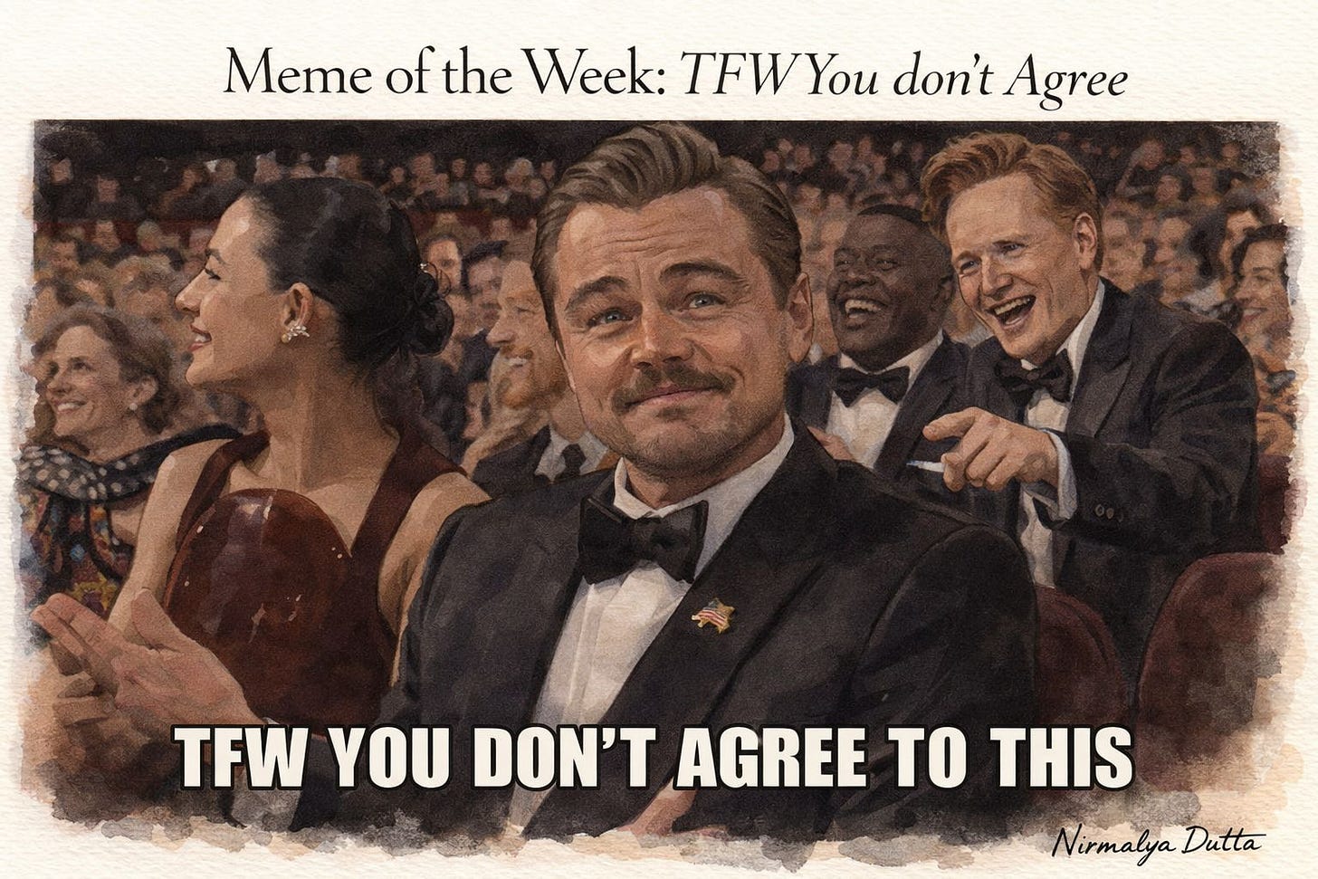 No matter what Leonardo DiCaprio does, it becomes an internet meme. So far we’ve had the Titanic “King of the World”, the Great Gatsby cheers, pointing at the TV in Once Upon a Time in Hollywood, the Wolf of Wall Street chest-thumping, the Django Unchained evil laugh, the slightly racist Inception one, and finally the “TFW You Don’t Agree” meme from this year’s Oscars—born while Conan O’Brien joked about Leonardo always becoming a meme. Talk about meta.